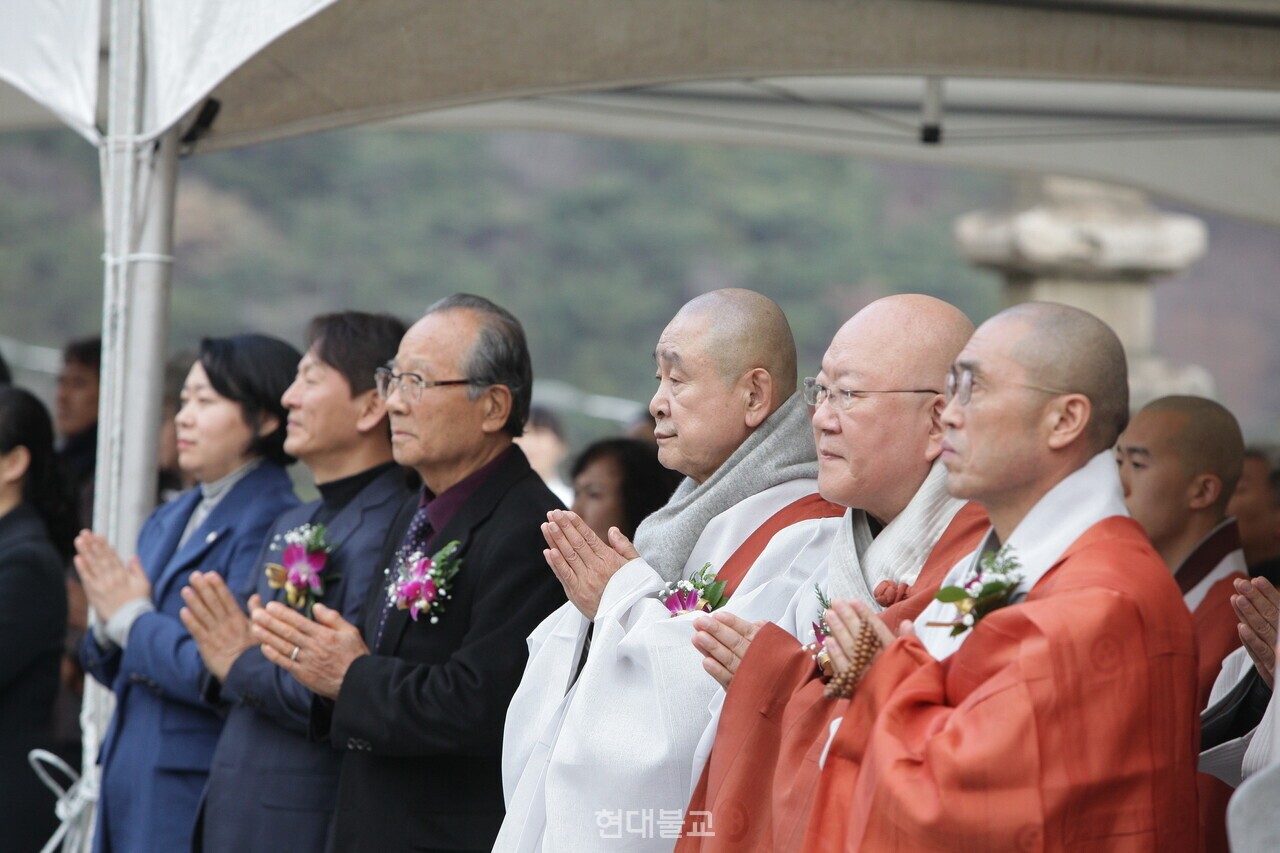 이날 착공식에는 방장 정여 대종사를 비롯해 수좌 수불 대종사, 주지 정오 스님, 부주지 대방 스님을 비롯해 범어사 사중 소임자 스님들과 이윤희 부산불교연합신도회장, 성희엽 부산시 미래혁신부시장 등 재가 내빈과 범어사 신도단체 및 신도가 참석했다.
