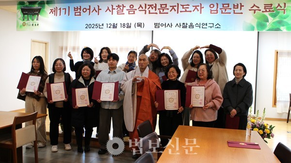 이날 배출된 제1기 입문과정 수료생은 총 17명이다. 수료생들은 연령과 이력은 다양하지만, 사찰음식의 생명존중 정신과 수행적 의미를 일상 속에서 실천하겠다는 공통된 서원을 밝혔다. 이어 전문반에 진학해 사찰음식에 대한 전문성을 심화할 뜻을 밝혔다. 범어사 사찰음식연구소 전문지도자 자격과정은 입문과정을 포함해 총 1년 과정으로 진행된다.