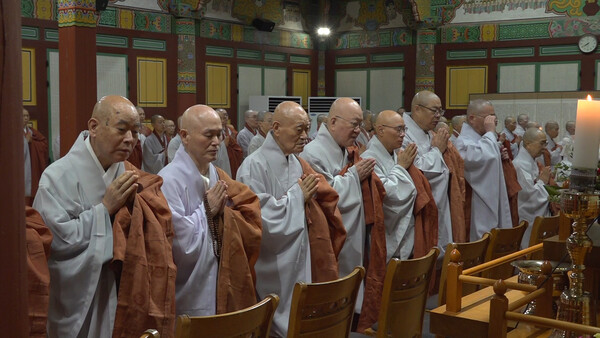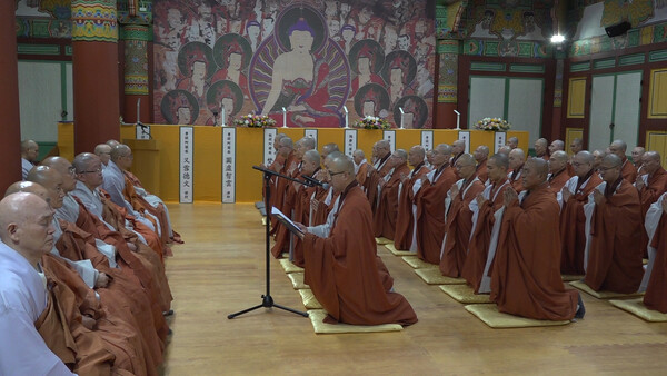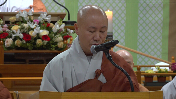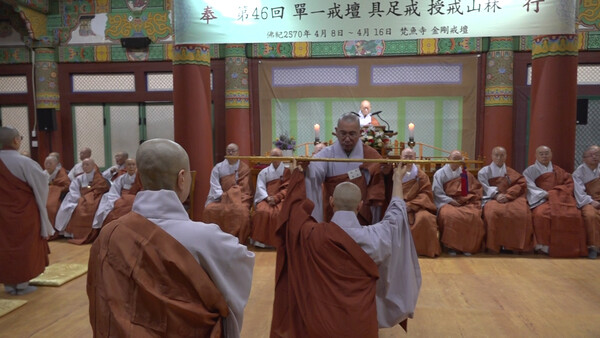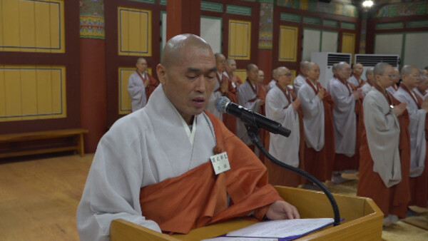 조계종 종정 성파스님은 전계대화상 무관스님이 대독한 법어를 통해 "구족계를 받는 일은 청정승가 구성원의 자격을 갖추는 일이며 수계를 통해 화합승가를 구성하고 유지하는 일은 불조의 혜명을 길이 이어가는 소중한 일"이라고 강조했습니다.