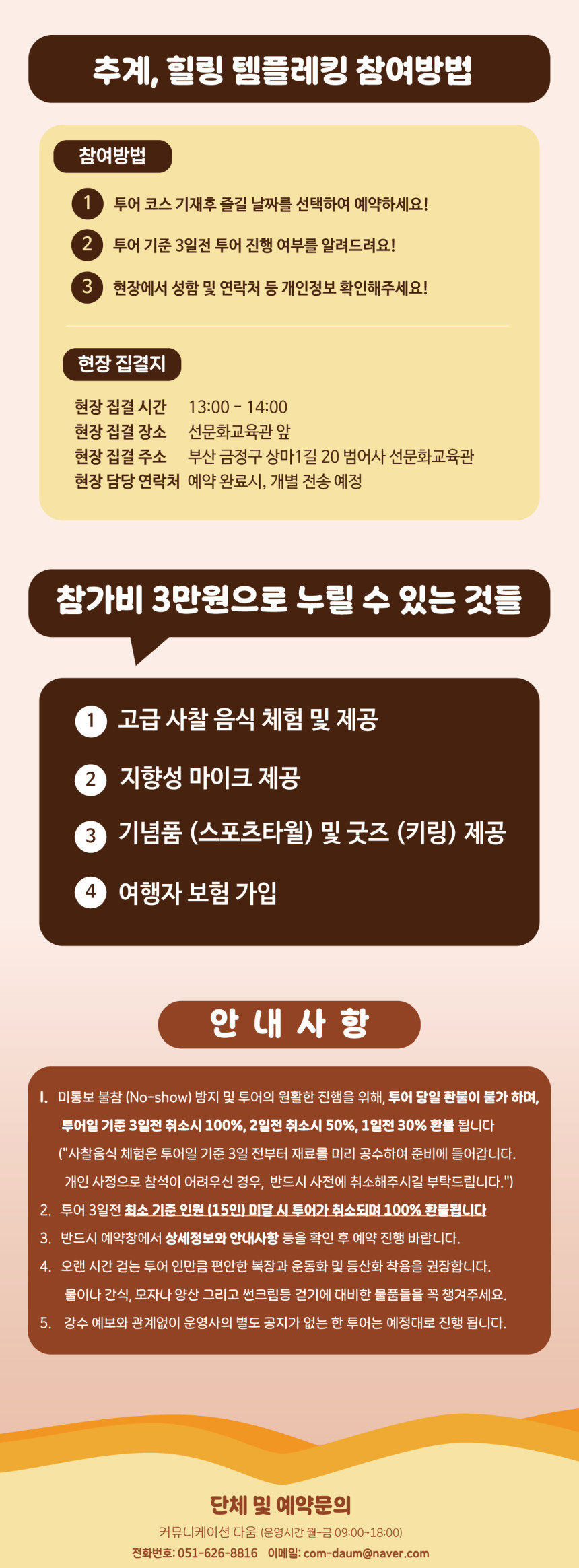 * 다른 참가자들을 위해서라도 반드시 집결시간을 엄수해주시길 바랍니다.