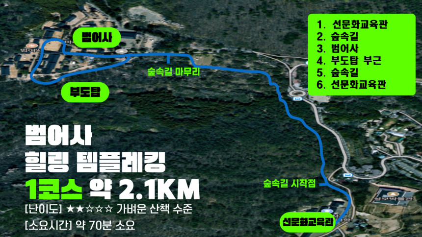선문화교육관 - 숲속길 - 범어사 - 부도탑 부근 - 숲속길 - 선문화 교육관