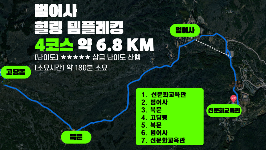 선문화교육관 - 범어사 - 북문 - 고당봉 - 북문 - 범어사 - 선문화교육관