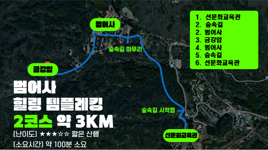 선문화교육관 - 숲속길 - 범어사 - 금강암 - 부도탑 부근 - 숲속길 - 선문화 교육관